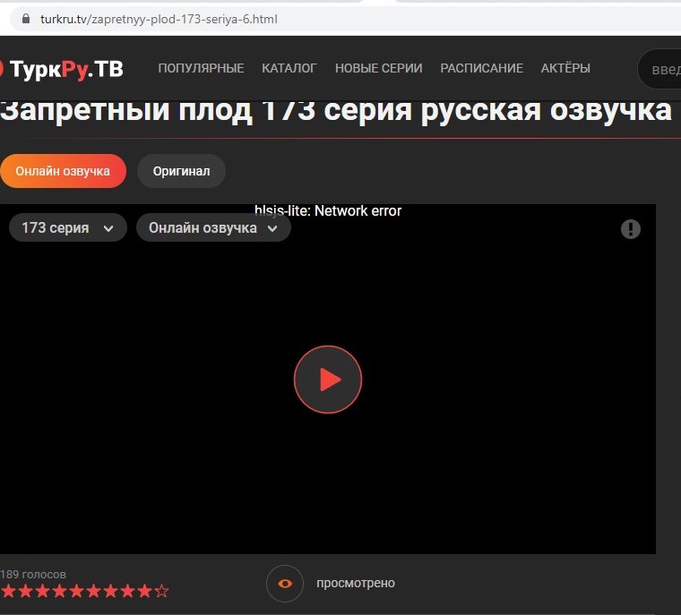 теперь на 15мин тормознуло... обновляешь страницу - выскакивает окно Подтвердить отправку и потом Страница turkru.tv не найденаНе найдена страница для веб-адреса trkrutv.cc/zapretnyy-plod-173-seriya-6.html HTTP ERROR 404. выходишь в расписание - ЗП-173серия - тогда опять можно смотреть
