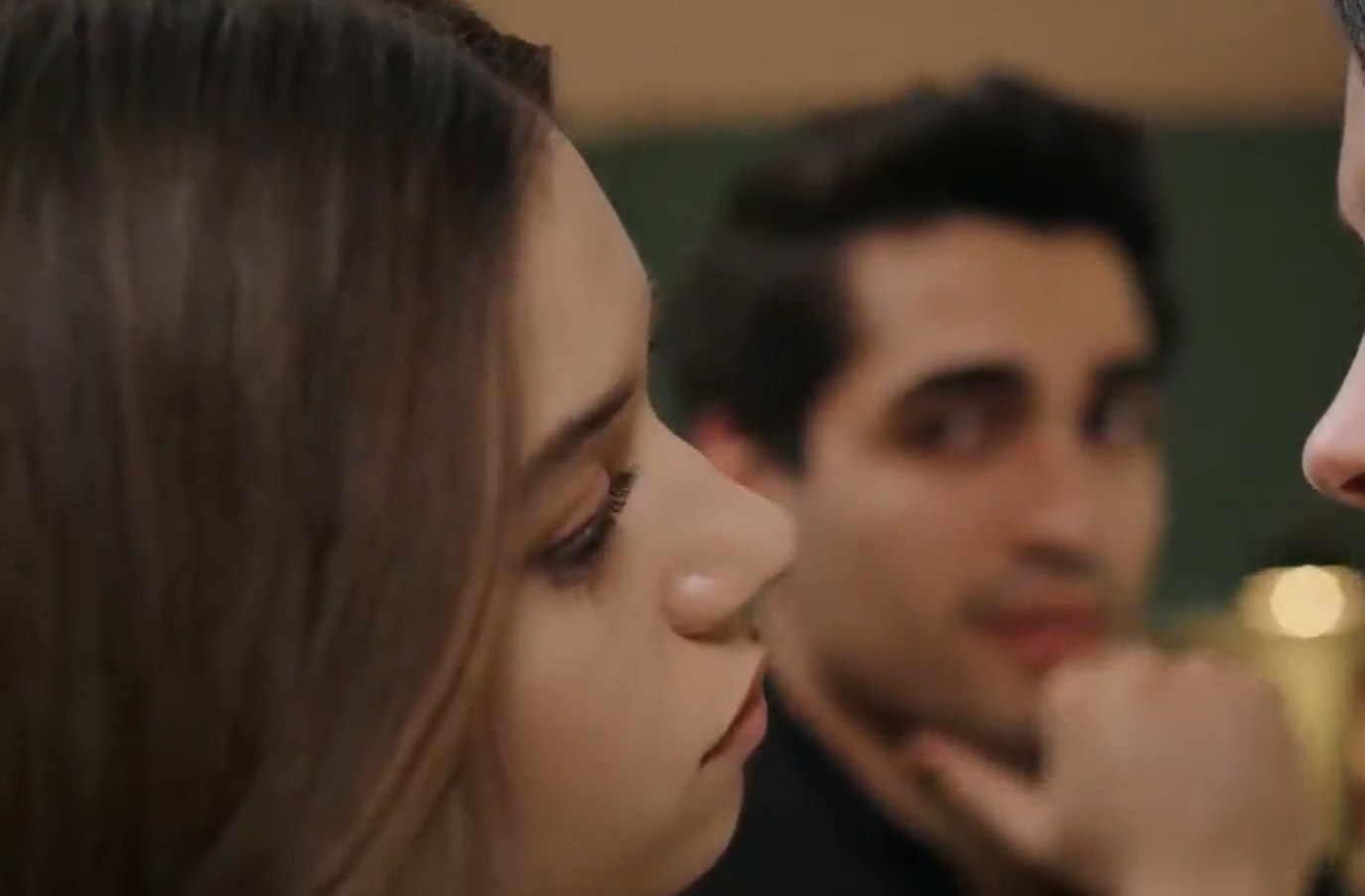 Что-то поцелуй не очень какой-то, какой в спойлерах обещали. У Сейран совсем лицо грустное. Хоть бы она на развод подала в этой серии, да и дед опять всех собаками обозвал, а ей вообще: раз его здесь нет, значит он тебя видеть не может, оскорбил девчушку, старый пердун!!